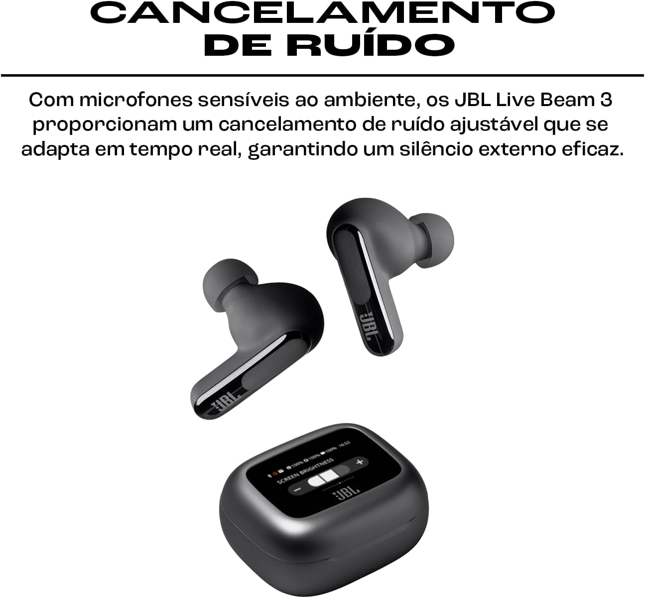 Achadinho do dia 09/12 JBL, Fone de Ouvido Bluetooth, Live Beam 3, In-ear, Tela de 1.45″, Cancelamento de Ruído