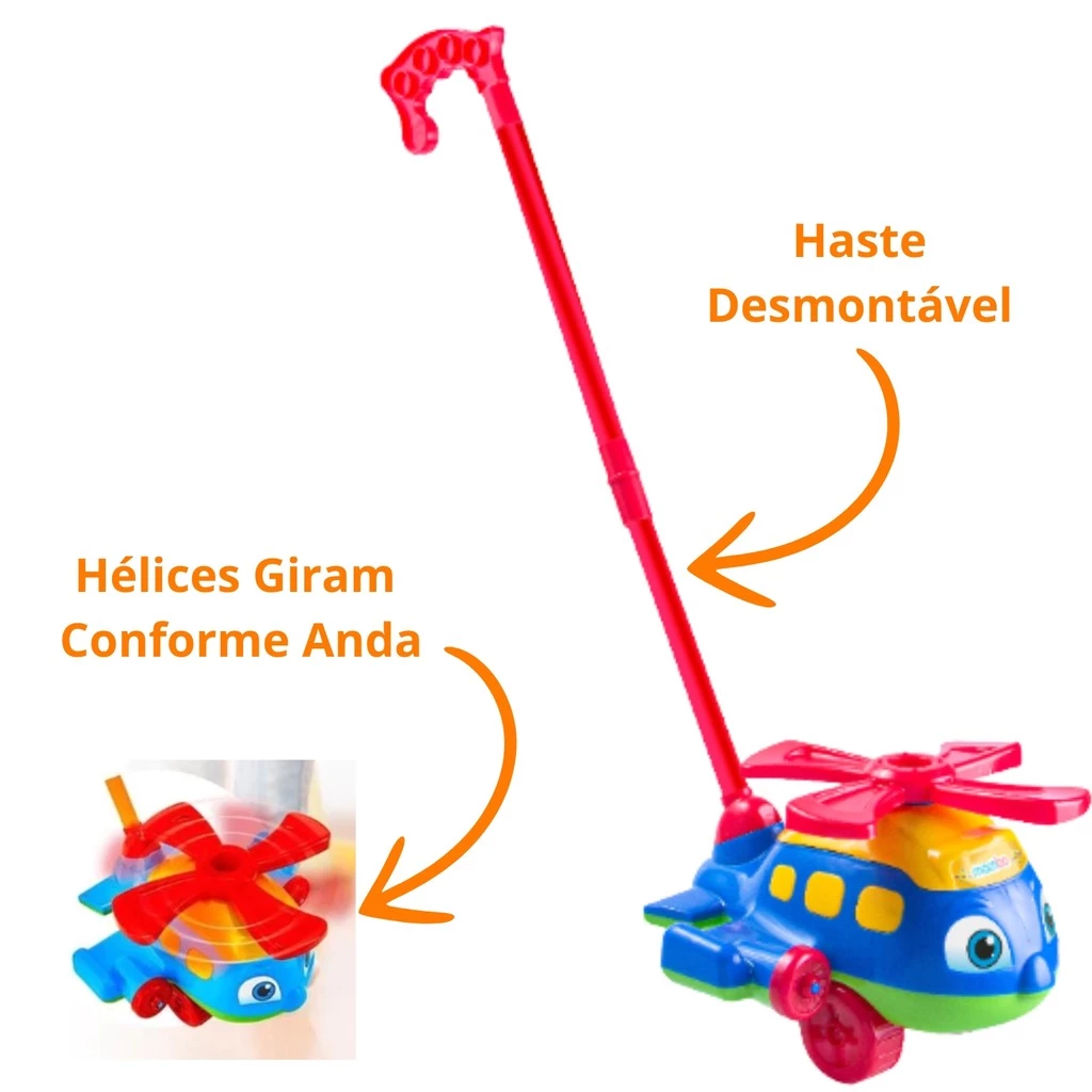 Estimula a Coordenação Motora: Ajuda no desenvolvimento das habilidades motoras e físicas das crianças. Hélice Giratória: A hélice do aviãozinho gira conforme ele é empurrado, proporcionando uma experiência realista e envolvente. Design Moderno: Disponível em cores sortidas e com um design atraente que encanta os pequenos.