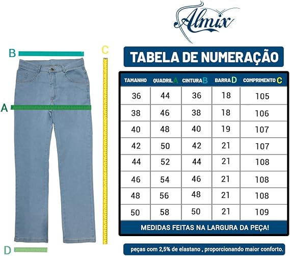 . Garantimos boa experiência de compra, invista em durabilidade e confiança, invista em Calça Jeans Almix.